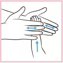 5)家長一手托著寶寶的手掌,另一手緩緩磨擦寶寶的手背。