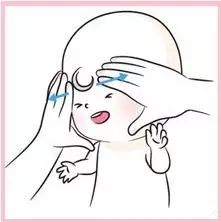 1)讓寶寶平躺在床上,家長的雙手平放在寶寶的額頭中央,緩慢的向兩側滑動推開。
