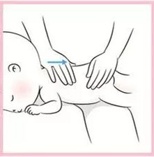 3)家長雙手四指合併,放在寶寶的背部右肩上,用手指指腹順時針方向畫圈,至寶寶的右下背處,再一路畫過脊椎,到左下背,在一直旋轉推至左肩,反複數回。
