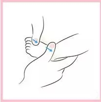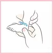 4)一手握住寶寶的腳踝,另一手以拇指及食指來捏揉寶寶的每一根腳趾,來回數次。