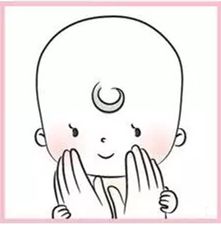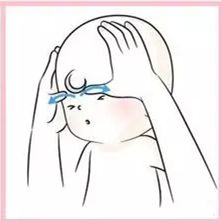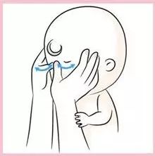 2)家長的雙手拇指放在寶寶的眉心上,拇指出力輕輕往眉毛兩側推壓,可以幫助寶寶安眠。