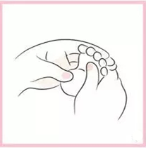 4)家長一手握住寶寶的手腕,一手的食指與拇指揉捏寶寶的每一根指頭。