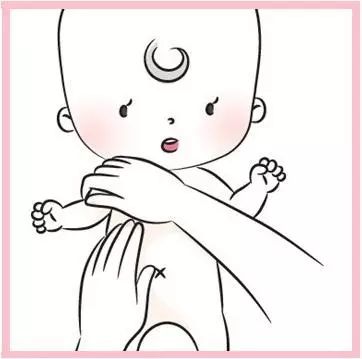 1)家長將寶寶的手臂舉高,讓寶寶的腋下露出來,用另一隻手按壓寶寶腋下數次,可強化寶寶的淋巴系統。