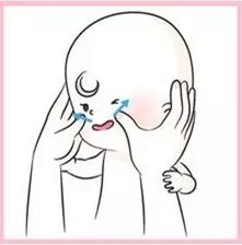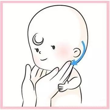 6)家長雙手的食指及中指放在寶寶的兩頰,旋轉推壓數次。